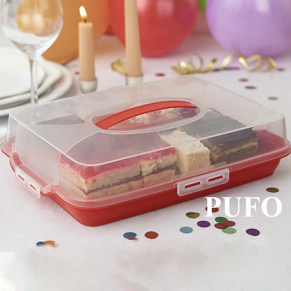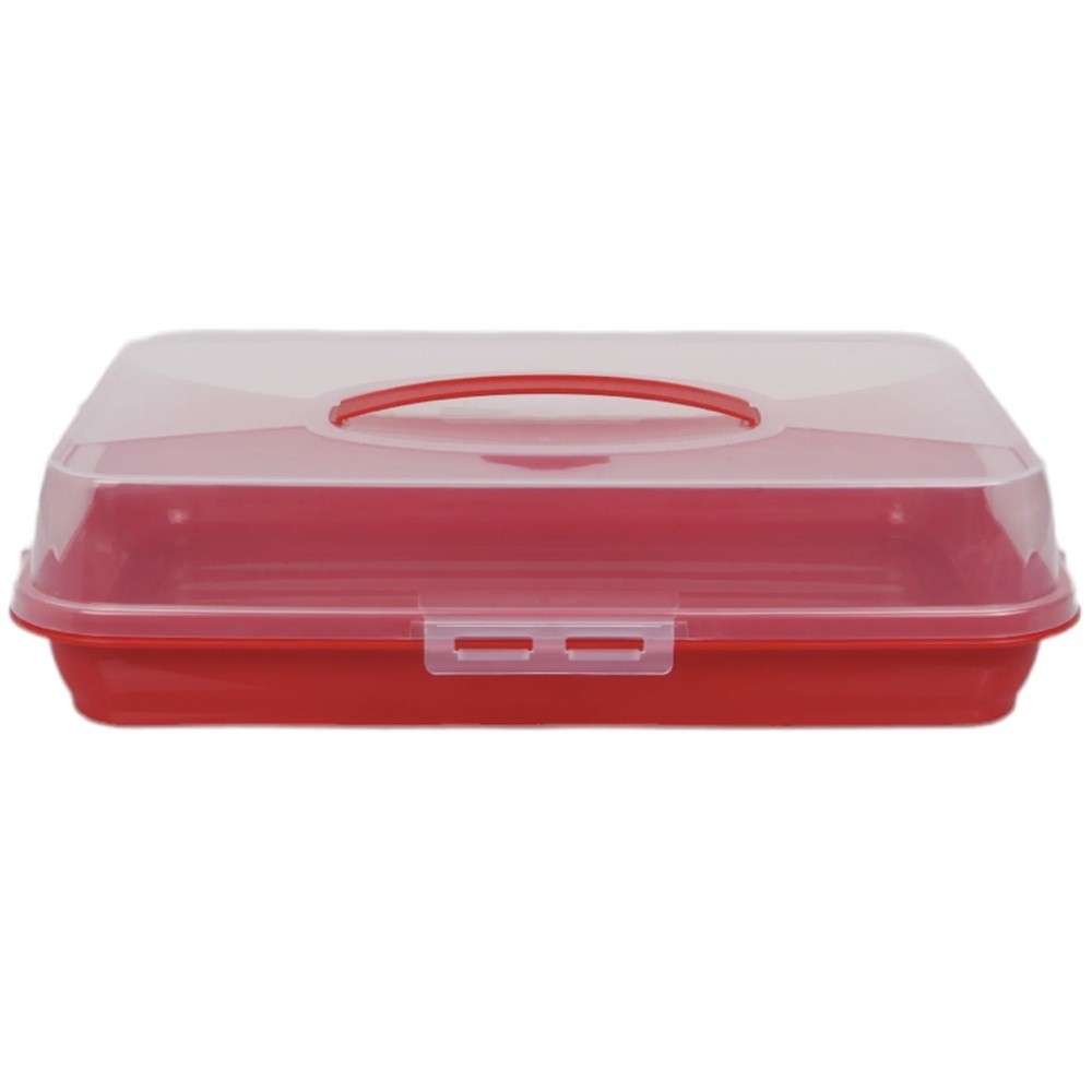 Platou Pufo Cookies cu capac transparent pentru servire torturi, prajituri, briose, produse de patiserie, 25 x 23 cm, rosu