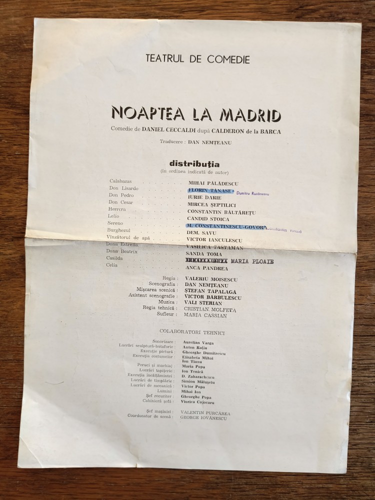 Pliant, program Teatrul de Comedie - Noaptea la Madrid / CD1P