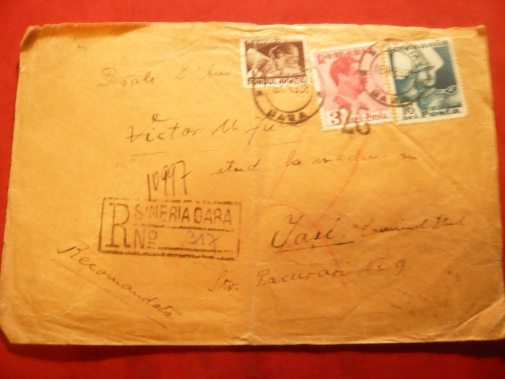 Plic circ.cu3 lei si 16 lei Uzuale Carol II Simeria- Iasi ,stamp. Simeria Gara