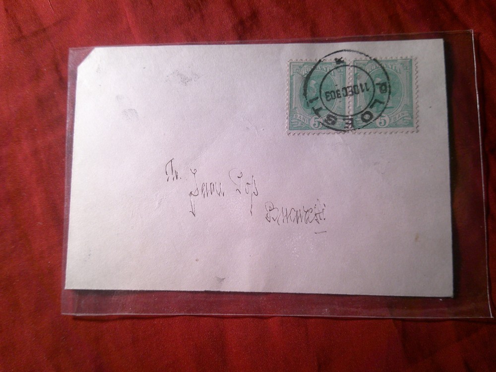 Plic circulat 1903 Ploiesti - Bucuresti m 2x5bani Carol I