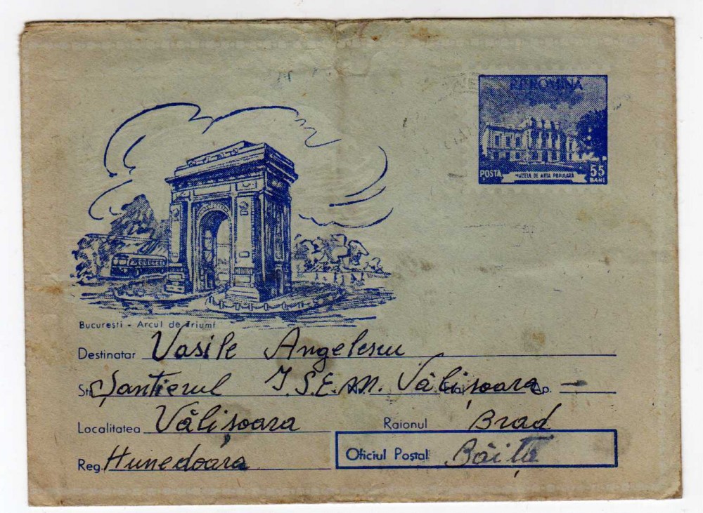 PLIC CU MARCA FIXA MUZEUL ARTA POP 55 BANI RPR 1957 BUCURESTI ARCUL DE TRIUMF