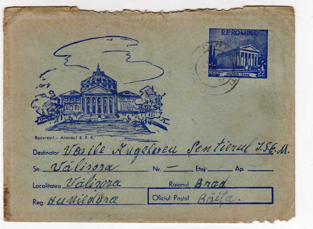 PLIC CU MARCA FIXA MUZEUL SIMU 55 BANI RPR 1957 BUCURESTI ATENEUL