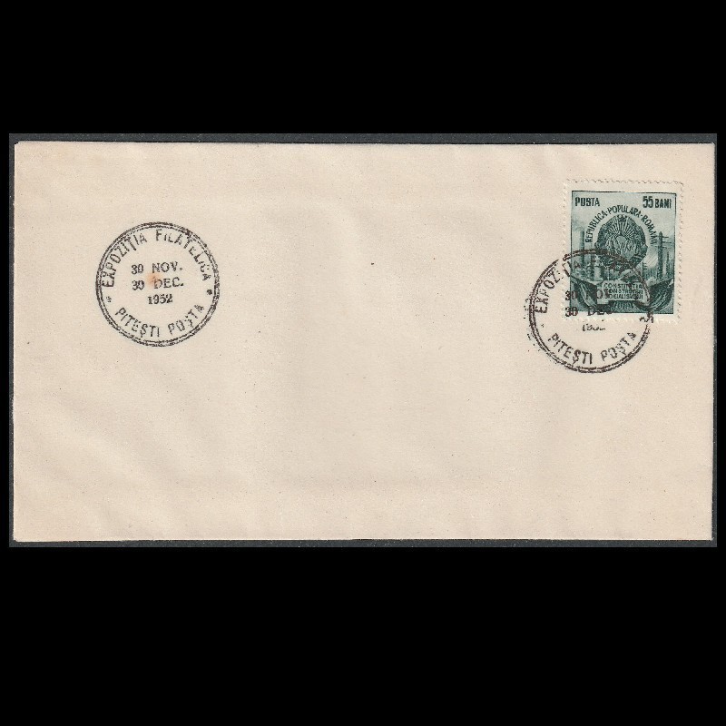 Stampila de ocazie "Expozitia Filatelica Pitesti 30 Nov. - 30 Dec. 1952"