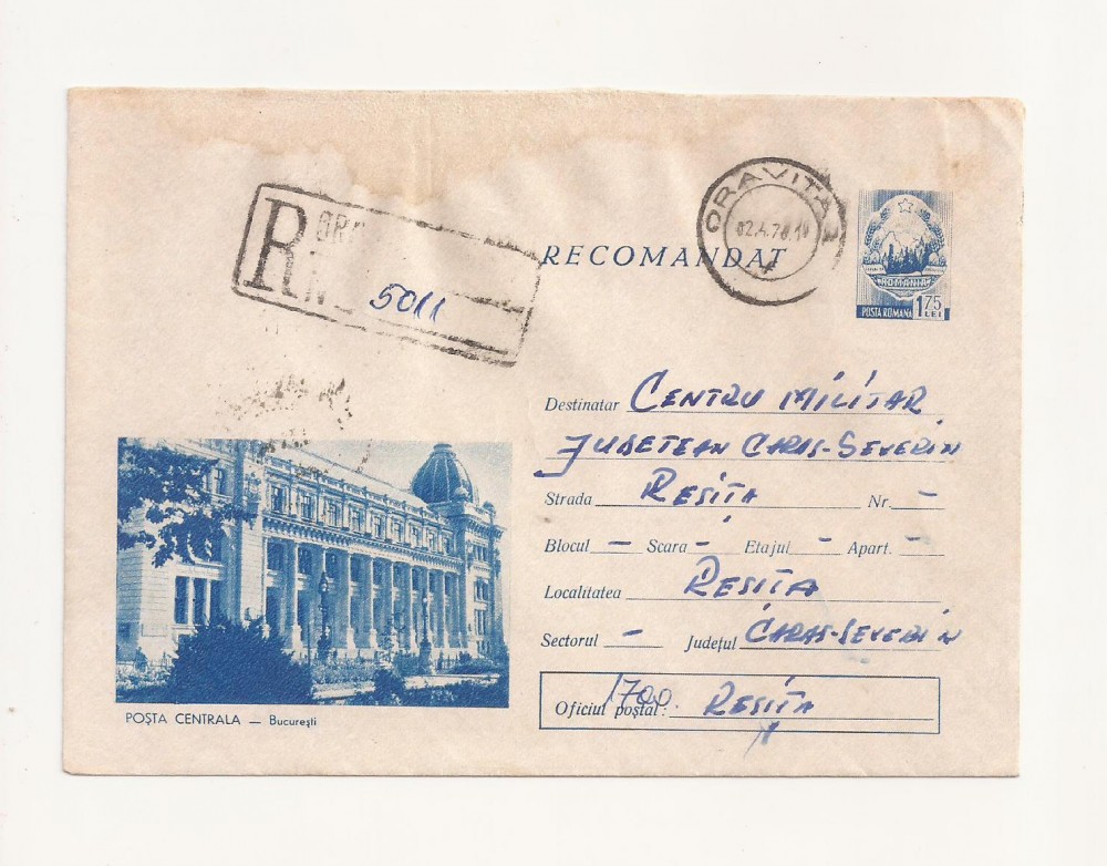 Plic FDC RECOMANDAT Romania -Bucuresti, Posta centrala, Circulat 1976