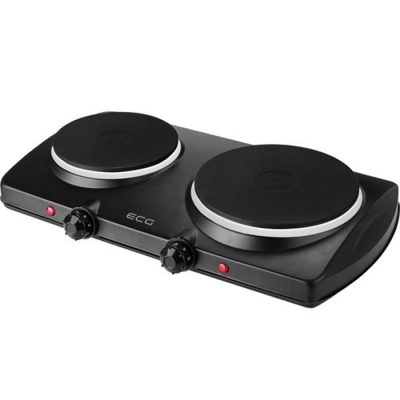 Plita electrica ECG, 1000/1500 W, 185/155 mm, 2 arzatoare, protectie supraincalzire, cablu 83 cm, Negru