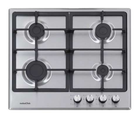 Plita incorporabila Nobeltek NHBG-6400IXF, Gaz, 4 arzatoare, Aprindere buton, Gratar fonta, Siguranta arzatoare, 60 cm, Inox
