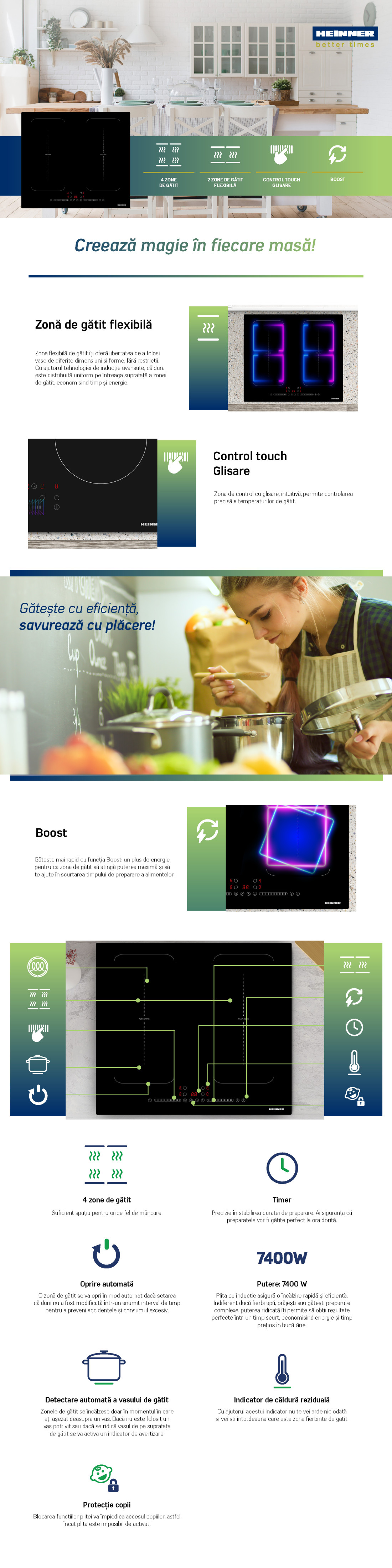 - Funcții: 2 zone de gatit flexibile