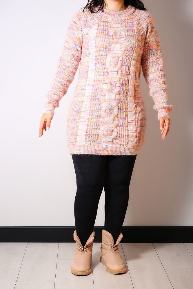 Material MohairPlover Lung conceput din tricot cu insertii stralucitoare mansete over size accesorizat cu cordon in talie. Marime universala se potriveste pt marimile M,L,XL,2XL.