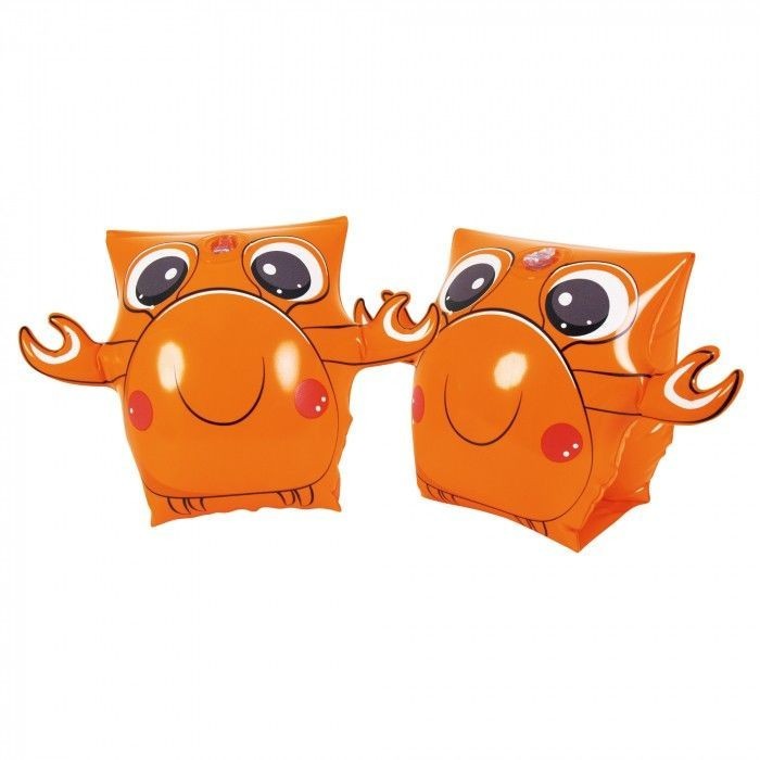 Plutitoarele gonflabile colorate pentru brațe sunt o soluție practică pentru jocurile în apă. Acestea sporesc siguranța și oferă confort în timpul înotului. Perfect pentru piscine și plaje. Motivul colorat al crabilor conferă produsului un aspect vesel.