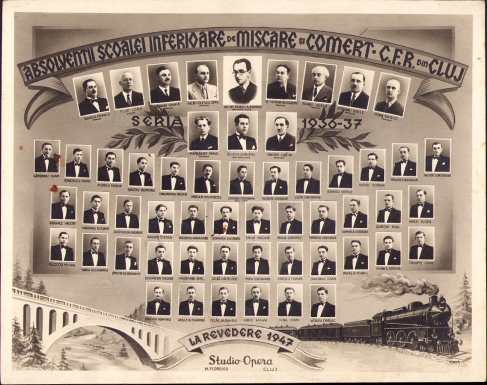 PM187N Absolvenții Școalei Inferioare de Mișcare și Comerț CFR din Cluj, 1936-1937, studio Opera Florescu, Cluj