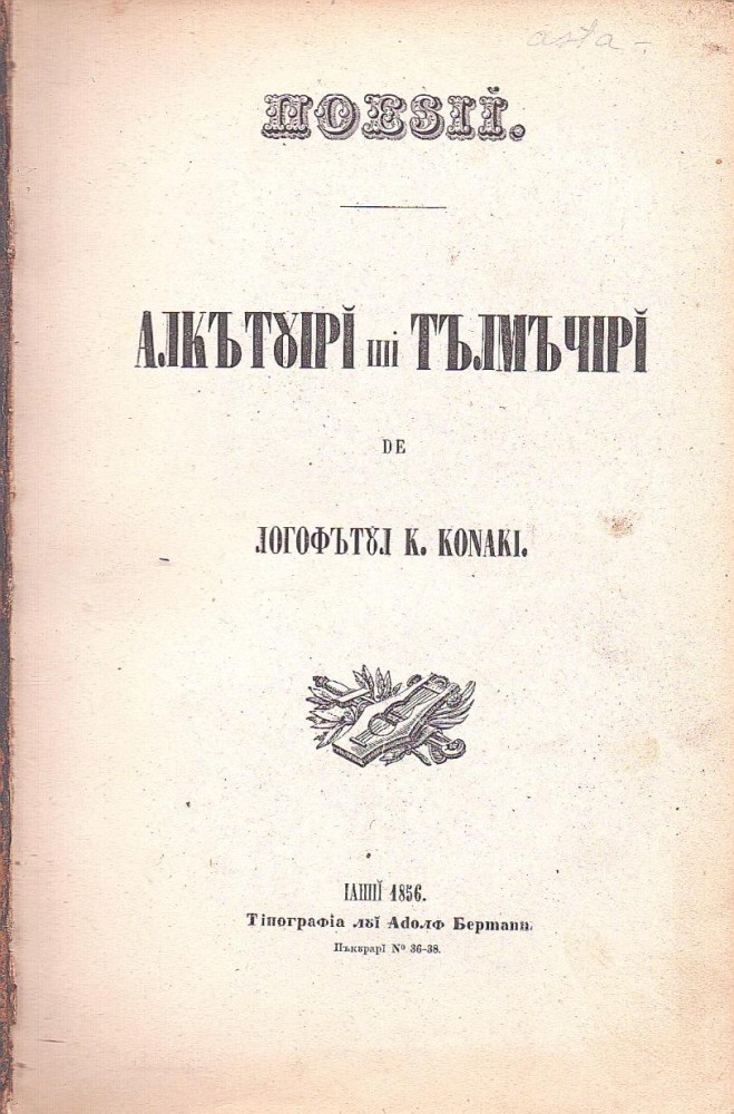 Poesii, alcătuiri și tălmăciri de logofătul C Conachi, 1856,