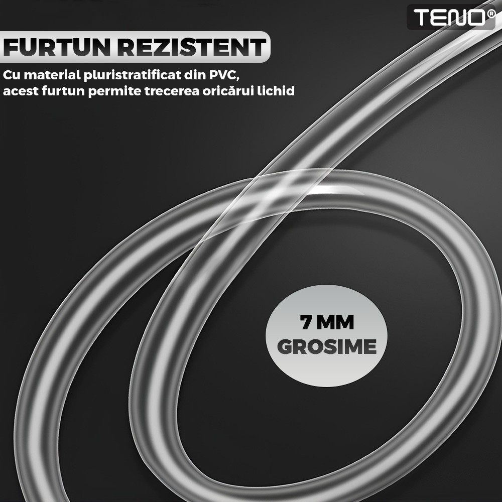 Pompa Manuala pentru Transfer Lichide Teno®, cleme prindere, tip sifon, furtun 1, 5m lungime, anti-scurgere, materiale calitative, negru-alb