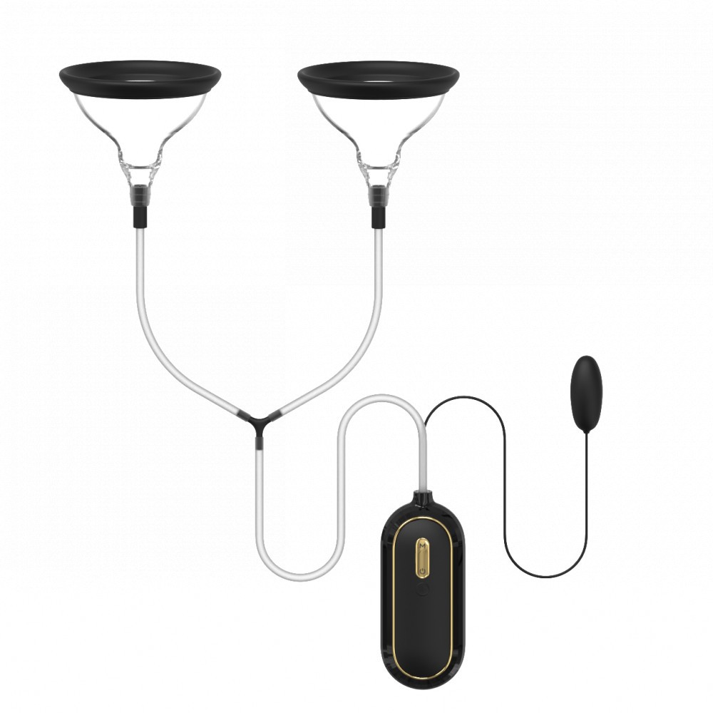 Pompa special creata pentru marirea sanilor, prevazuta cu 3 niveluri de suctiune. Acestea se actioneaza din telecomanda cu fir atasata pompei, care se incarca prin incarcator de tip USB inclus. Totodata, dispune si de un ou vibrator cu 9 tipuri de vibratie ce ofera senzatii intense de placere si dau un plus de unicitate produsului. Acesta poate fi folosit pentru stimularea oricarei din zonele erogene.Dimensiunile exacte se regasesc in imaginea alaturata. | Material: ABS + Silicon | USB: Da | Culoare: Negru | Functii: Vibratii