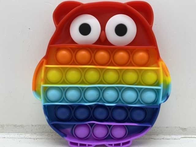 Jucarie antistres pop it in forma de bufnita cu ochi. Are inaltimea de 16cm si este din cauciuc de calitate foarte buna.
