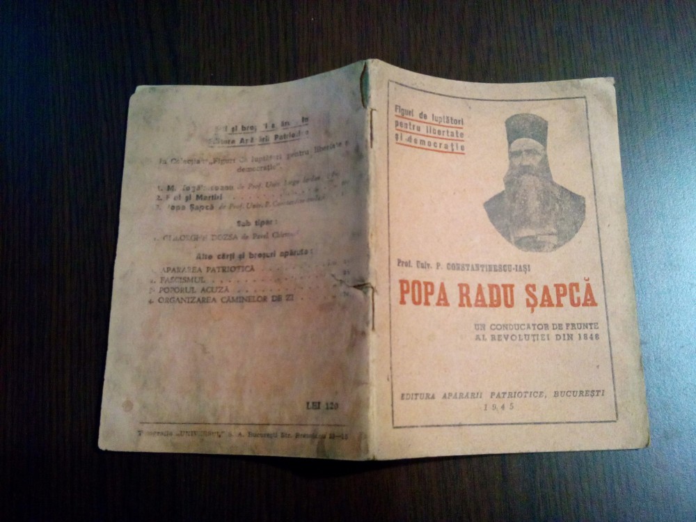 POPA RADU SAPCA un Conducator de Frunte al Revolutieidin 1848 - P. Constantinescu-Iasi - Editura Apararii Patriotice, 1945, 40 p.