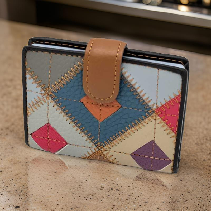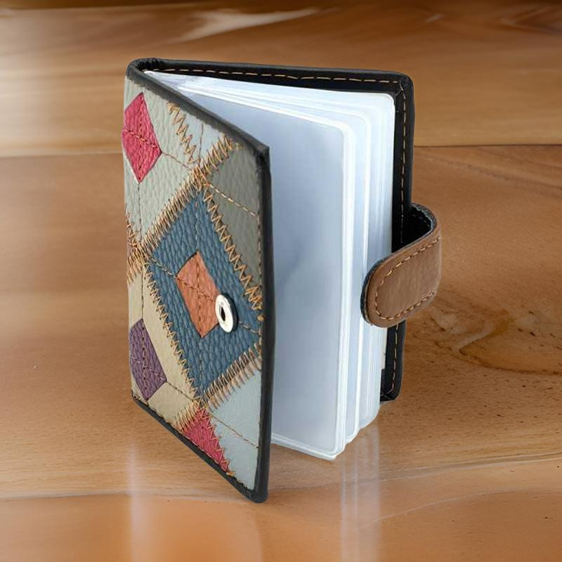 Portcard dama din Piele Naturala: Port Card pentru Femei Multicolor cu 20 Sloturi, 10x7,5 cm