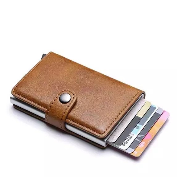 Portofel pentru carduri cu protectie RFID, JustZEN™, piele, compact, Maro