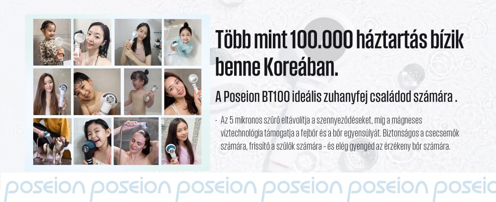 A Poseion BT100® zuhanyfej Koreában már több mint 100.000 háztartásban bizonyított.