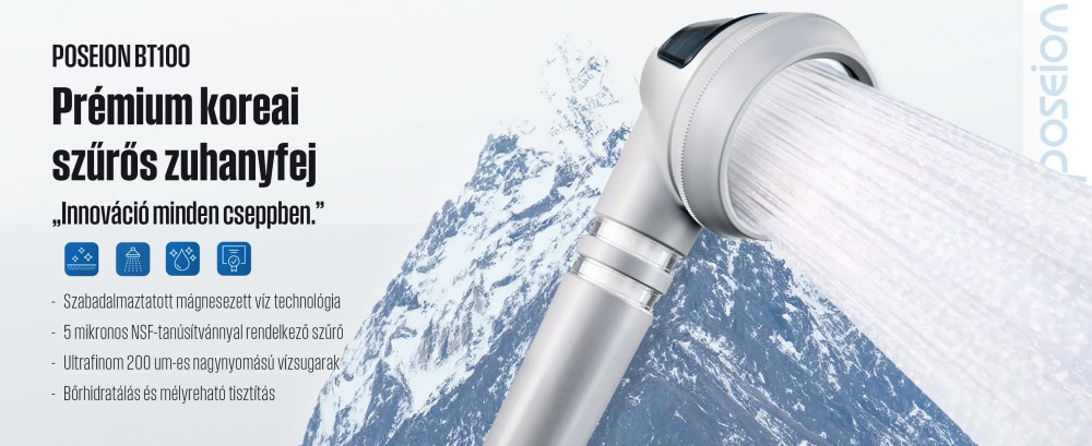 Poseion BT100® zuhanyfej - Szabadalmaztatott koreai kozmetikai innováció a fürdőszobádban.