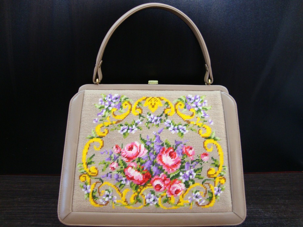 FRUMOASA POSETA GOBLEN CUSUTA IN PUNCT MARE,ACEASTA ARE DIMENSIUNILE DE 29 X 7 CM SI INALTIMEA DE 36 CM.POSETA ARE O ZGARIETURA PE UNA DINTRE MARGINI (vezi foto).