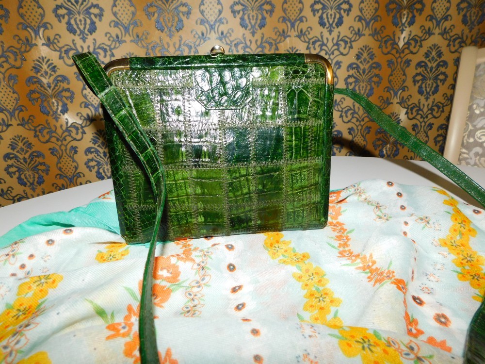 Poseta vintage crocodil , verde , deosebita , esarfa noua cadou