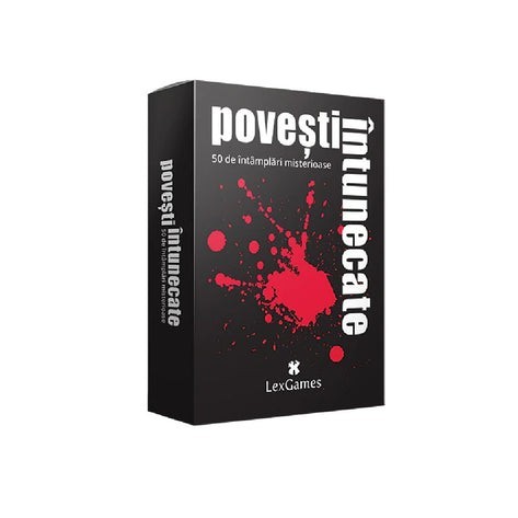 Povesti intunecate !! Este un joc de petrecere cu 50 de intamplari ciudate, 31 de crime, 49 de cadavre, 11 criminali, 12 sinucideri si o cina mortala. Cum s-au intamplat? Rezolva misterul. Reconstruieste fiecare incident, piesa cu piesa, punand intrebari, ghicind sau analizand evidentele! Contine: 50 de carti, 1 regulament. Varsta recomandata: 12+ ani. Dimensiuni set: 13.5 x 9.5 x 2.5 cm.