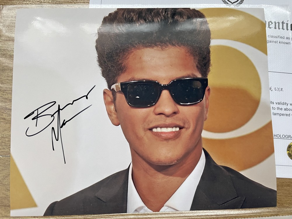 Poza ( 25x20 cm) cu autograf original Bruno Mars + Certificat de autenticitate