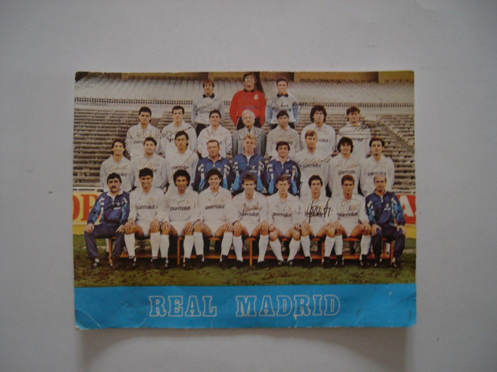 Ofer spre vanzare o poza cu Real Madrid, tiparita in Romania, nedatata, circa 1990, cca. 20x15 cm, destul de sifonata.