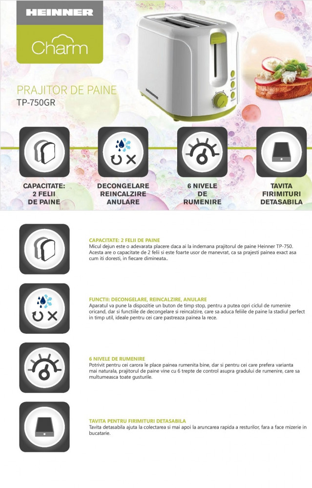 - Accesorii incluse prajitor paine: Tavita pentru firimituri