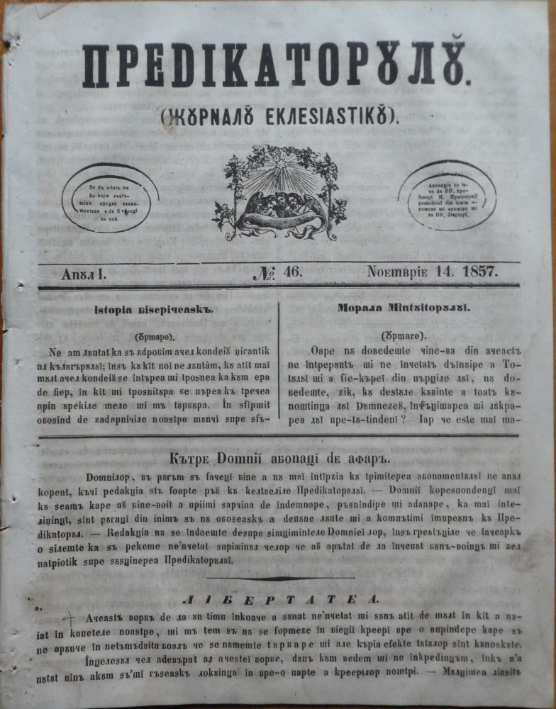 Predicatorul ( Jurnal eclesiastic ), an 1, nr.46, 1857, alafbetul de tranzitie
