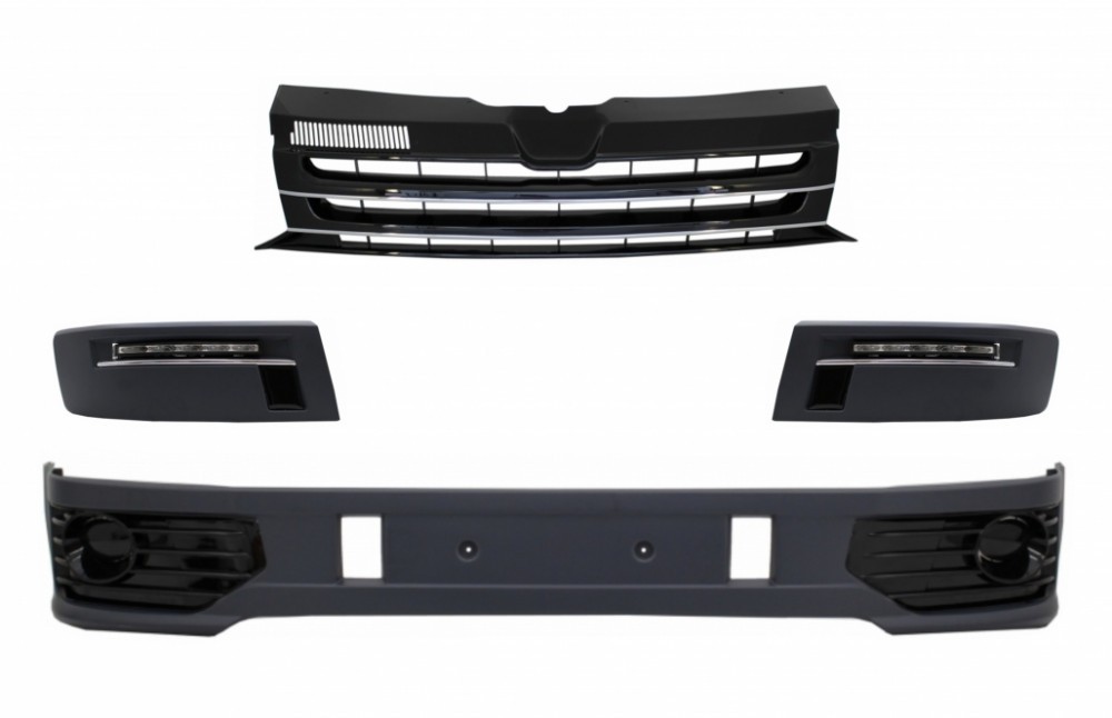 Prelungire Bara Fata cu Grila Centrala fara emblema si Lumini de zi LED DRL VW Transporter Multivan Caravelle T5 T5.1 Facelift (2010-2015) Sportline P