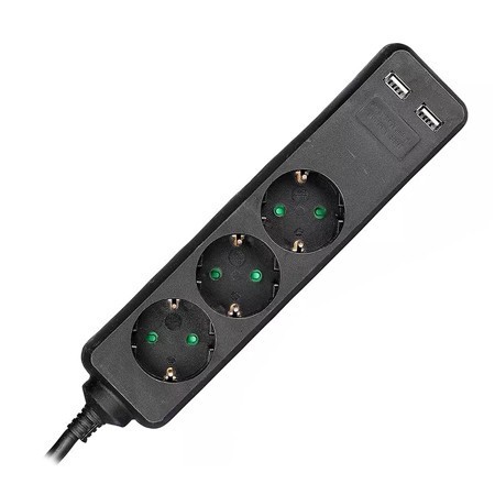 Prelungitor 3 cai + 2usb 1.5m(3g1.5mm2) negru