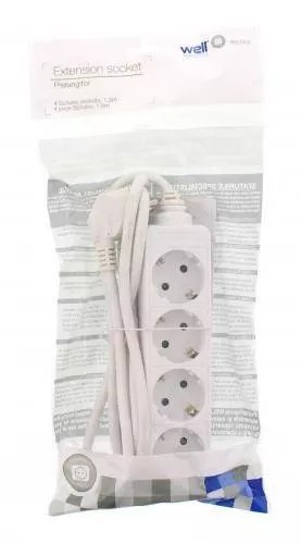 Prelungitor 4 cai 1.4m 3xG1.5mmp Well. Prelungitor 4 cai 1.5m Date tehnice Material: PP Cablu: H05VV-F 3xG1.5mmp Max.16A 250V 3500W