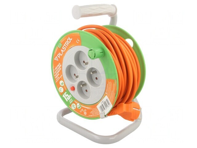 Prelungitorul de alimentare bobinat Prize: 4 PVC portocalie
