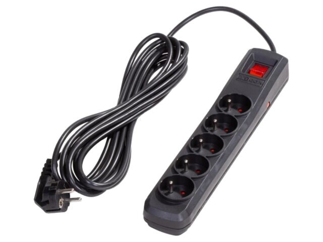 Prelungitor ARCON 5 prize 10A cu protecție la supratensiune și cablu 5m negru