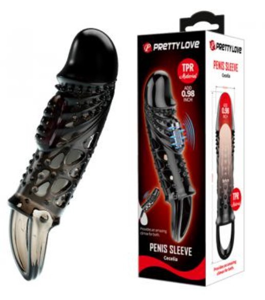 Prelungitor Penis Cecelia cu Vibratii, +2.5 cm, TPR, Negru