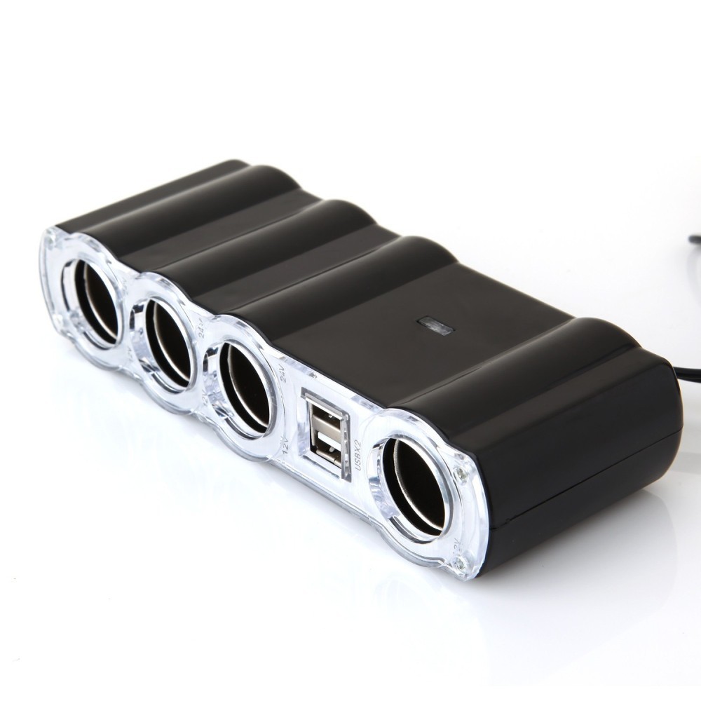 Prelungitor priza 4 cai auto si 2 USB, OMC
