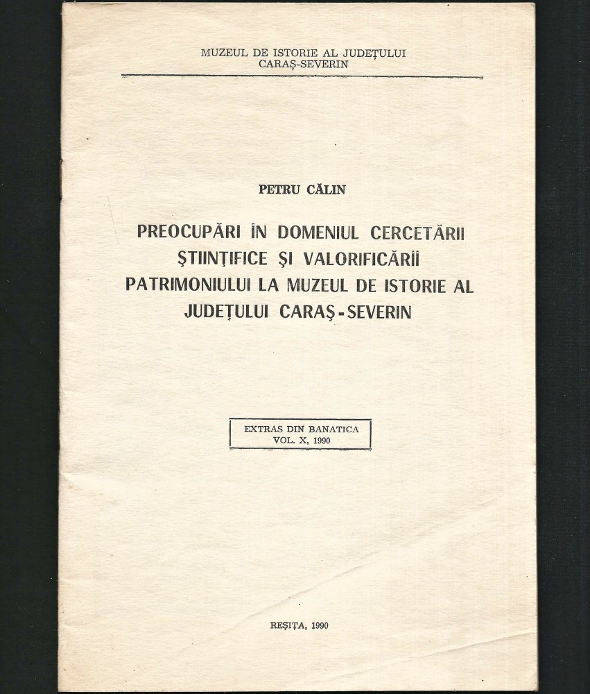 PREOCUPĂRI ÎN DOMENIUL CERCETĂRII ȘTIINȚIFICE ȘI VALORIFICĂRII PATRIMONIULUI LA MUZEUL DE ISTORIE, JUDEȚUL CARAȘ-SEVERIN - PETRU CĂLIN, BANATICA, 1990