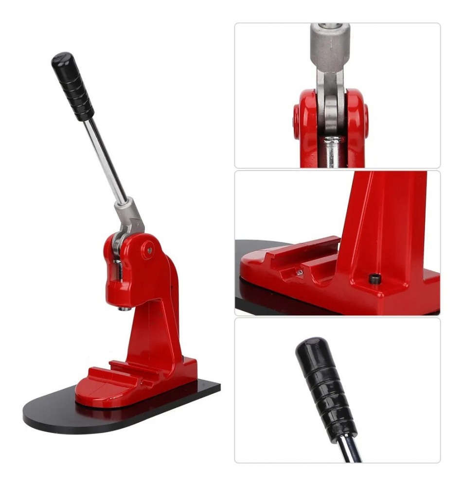 - · Mâner care economisește muncă: Mânerul mașinii de fabricare a nasturii este proiectat cu accent pe ergonomie. Oferă o prindere confortabilă pentru tine. În plus, cauciucul antiderapant de pe partea superioară a mânerului va preveni accidentele.
