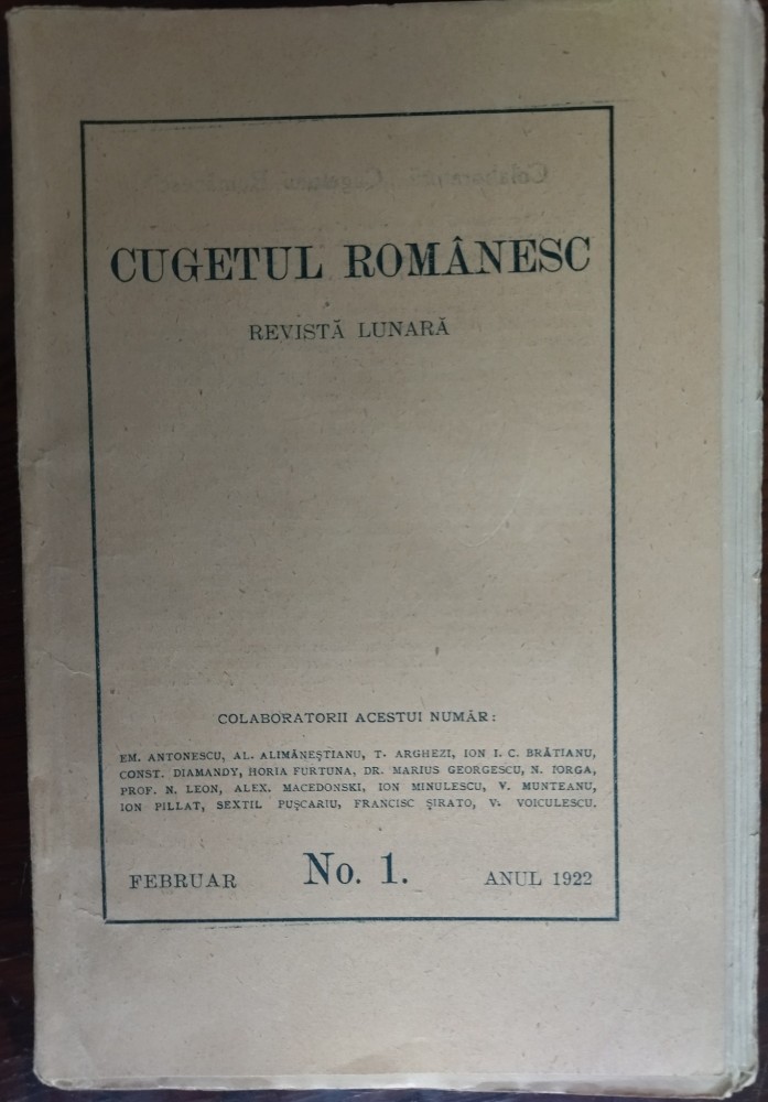 PRIMUL NUMAR DIN REVISTA CUGETUL ROMANESC/1922(Arghezi/Macedonski/Iorga/Pillat+)