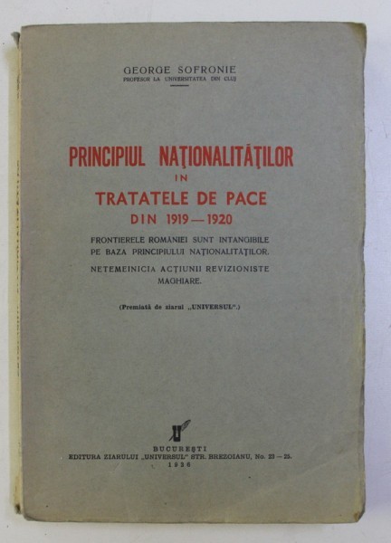PRINCIPIUL NATIONALITATILOR IN TRATATELE DE PACE DIN 1919-1920 de GEORGE SOFRONIE , 1936