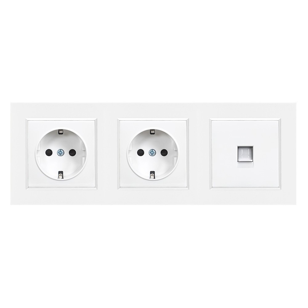 Priză cu două prize împământate Nova III cu conector UTP și cadru alb