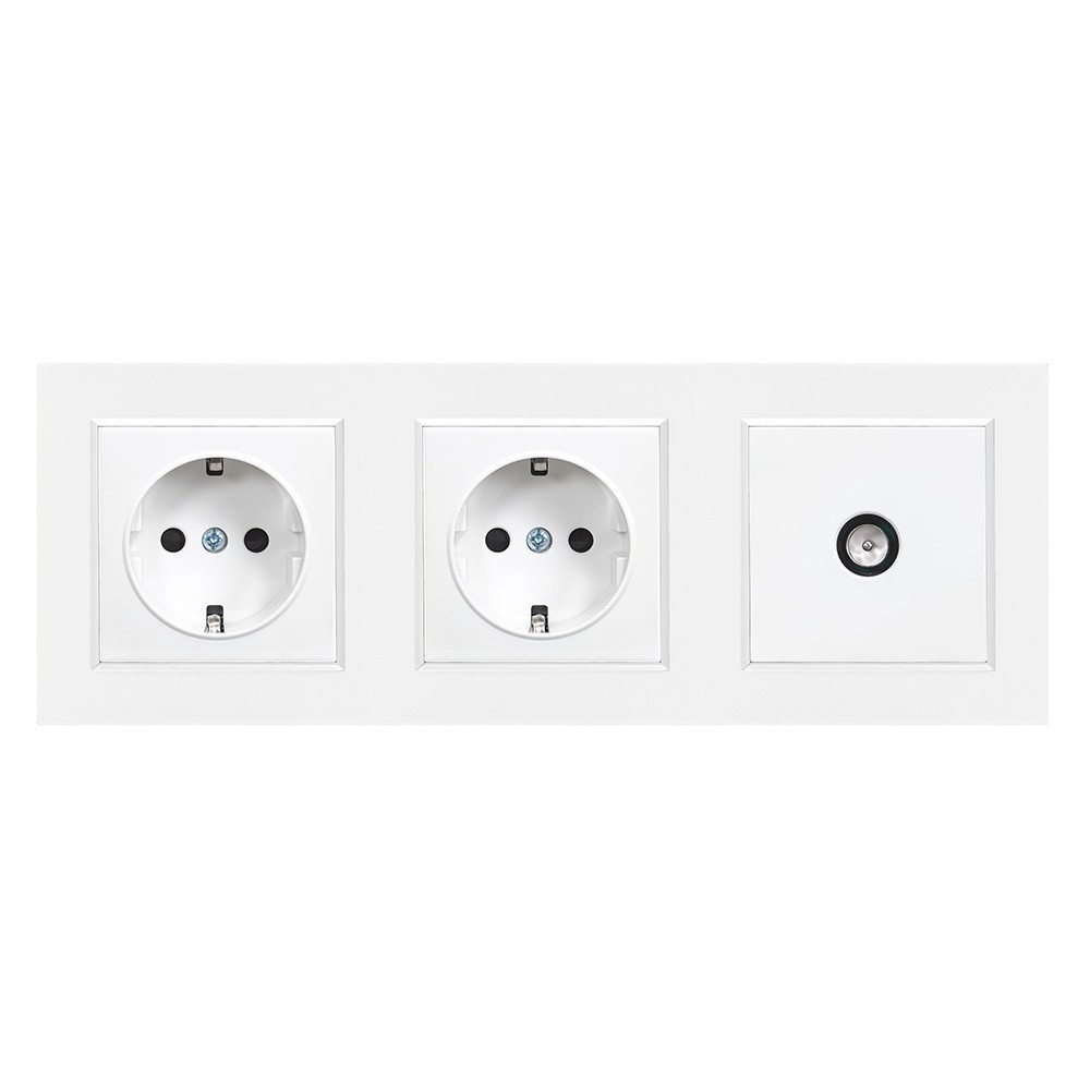 Priză Nova III cu două prize împământate cu priză TV și cadru alb