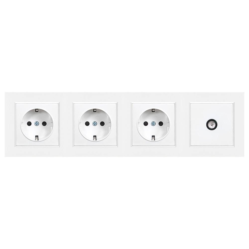 Priză Nova IV cu trei prize împământate cu priză TV și cadru alb