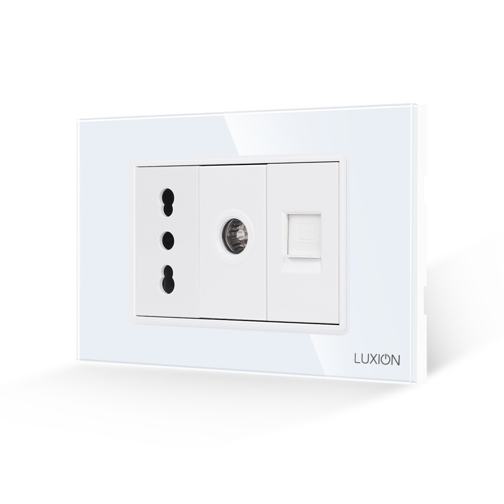 Priza ingusta + TV + internet cu rama din sticla Luxion, standard Italian, 3M - solutia ideala pentru casa sau spatiul tau. Bucura-te de un design rafinat si functional, cu atentie la detalii. LUXION se integreaza perfect in orice mediu. Astfel poate fi montat nu doar in casa, ci si in spatii precum: birouri si spatii comerciale, spatii HoReCa, showroom-uri si sali de prezentare, depozite si spatii industriale moderne, cladiri rezidentiale sau de birouri.