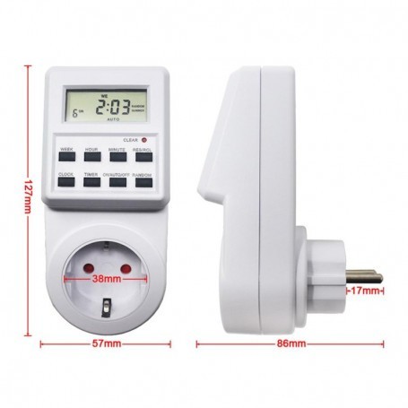 Priza programabila timer-dig-10-wl de la Well poate fi programata digital si dispune de afisaj electronic. Puterea maxima suportata este de 3500W, iar frecventa este de 50 Hz.