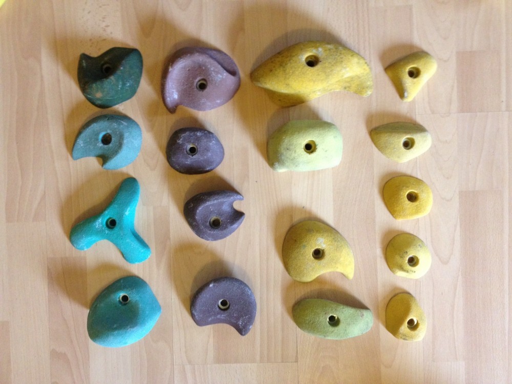 Set de 17 prize pentru panou escalada de marime S,M,L,XL . Prizele nu au fost montate pe panou dar sunt usor zgariate din cauza depozitarii.