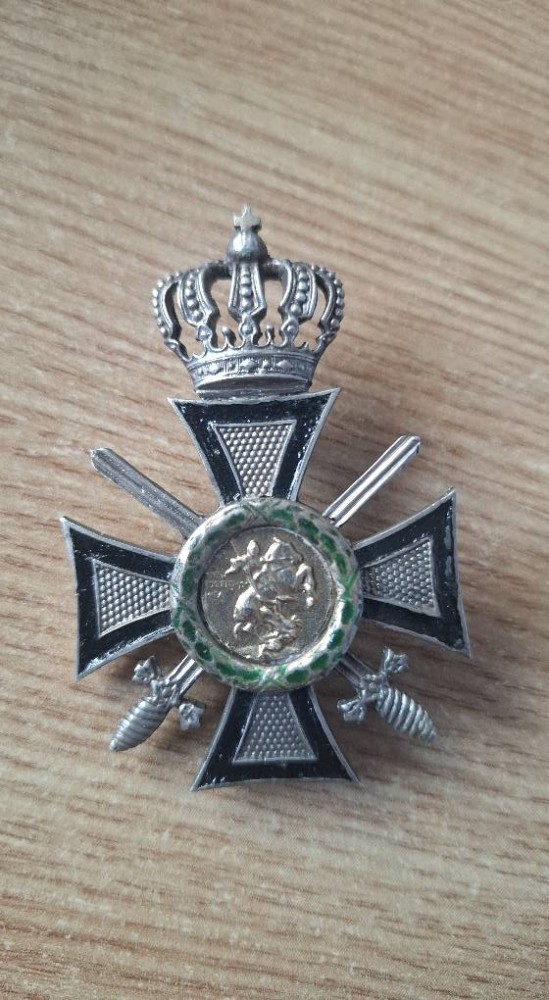 Proba Ordinului Sfântul Gheorghe cls a 3-a cu spade, piesa din argint cu multiple marcaje de argint pe ac.