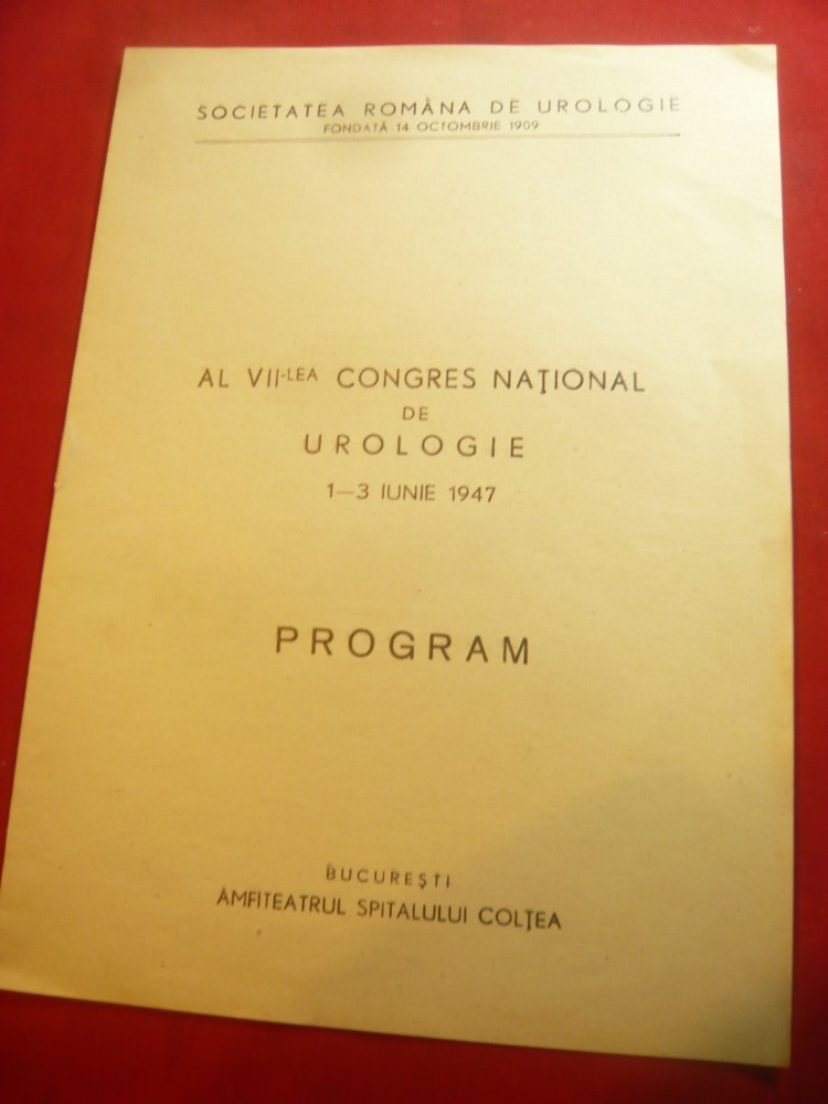 Program al Societatii Romane Urologie la alVII Congres National 1947 ,7 pag