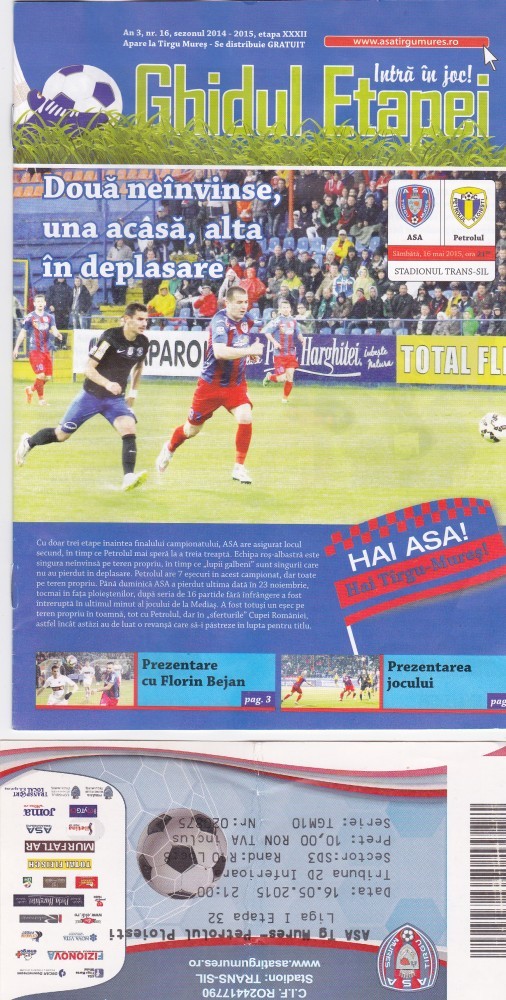 Program+bilet meci fotbal ASA TIRGU MURES - PETROLUL PLOIESTI 16.05.2015